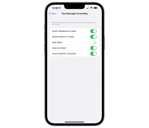 Select all the ones you want text messages forwarded to. And you can select more messages in that. On the iPhone go to SettingsMessages and select Text Message Forwarding.